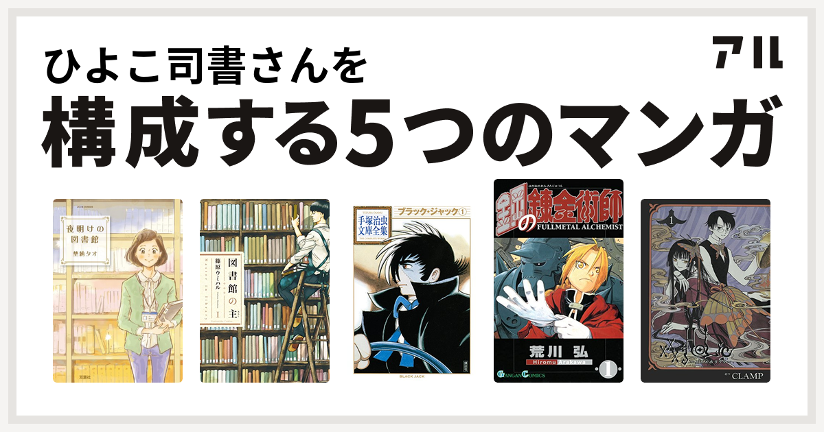 ひよこ司書さんを構成するマンガは夜明けの図書館 図書館の主 ブラック ジャック 鋼の錬金術師 Holic 私を構成する5つのマンガ アル